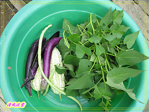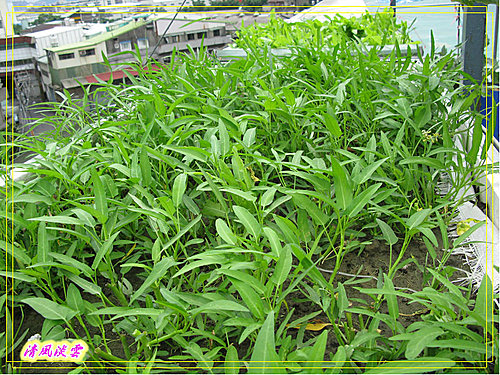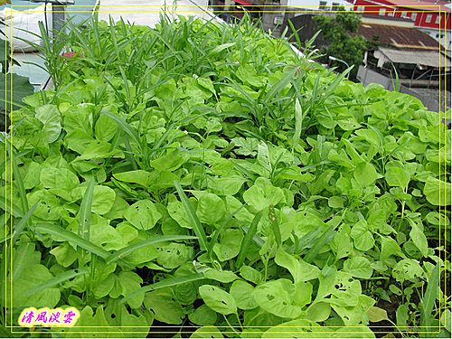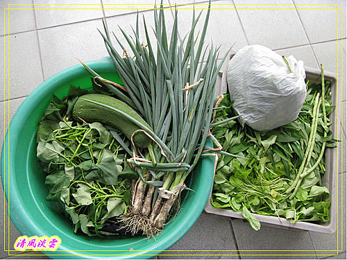 上回去小舅子的屋頂菜園摘回來的地瓜葉.
